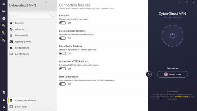 严格的无日志记录政策,智能选择服务器,设计良好的UI,几个,无需使用和时间限制无需注册或配置,大小更小,更安全。